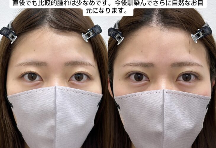 埋没法の抜糸と同時の韓流自然癒着法 術前→術直後