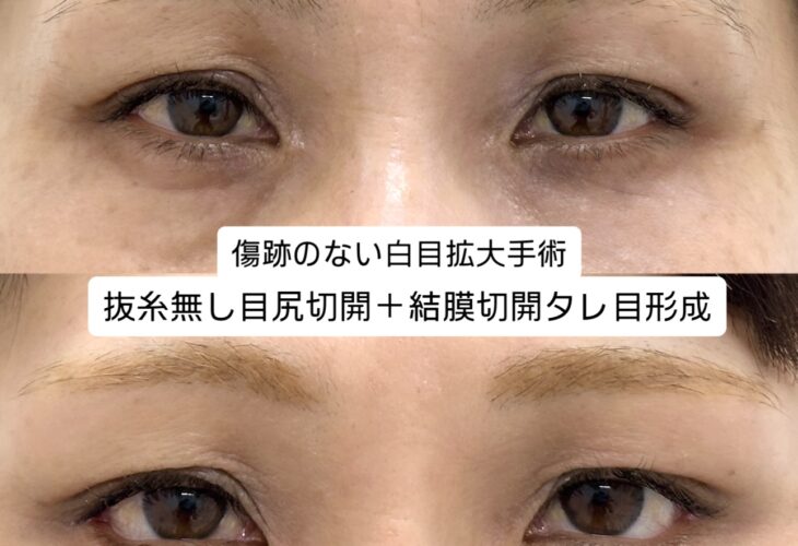 傷跡がなく白目の面積を増やす 白目拡大セット術前→一週間後