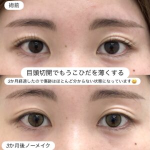 こちらのモニター様はもうこひだを薄くすべく目頭切開をされた方になります。