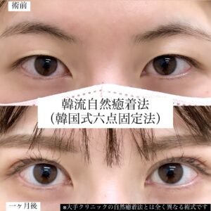 一番人気は比較的腫れが少なくとても取れにくい二重整形の韓流自然癒着法です。