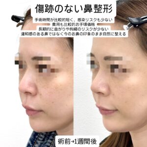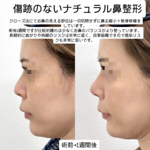 傷跡のない鼻整形にて鼻先をクローズ法にて整え軟骨も移植し鼻先を少し高く整えました。
