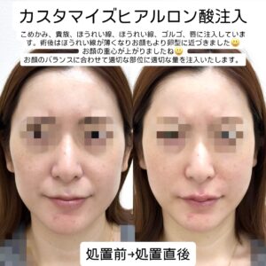 こちらのモニター様はカスタマイズヒアルロン酸注入にてお顔のヒアルロン酸注入をされた方になります。